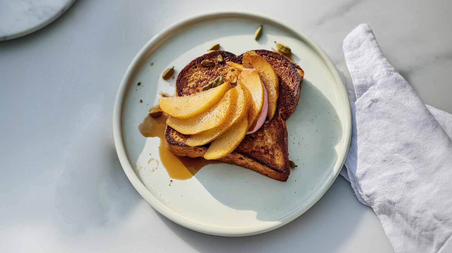 Grzanki francuskie z karmelizowaną gruszką i kardamonem