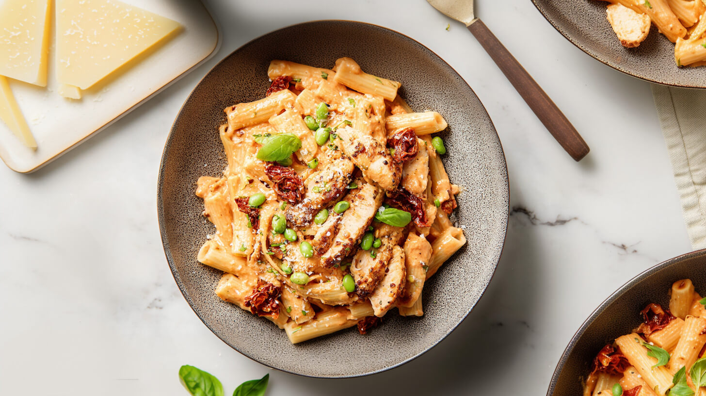 Makaron marry me z kurczakiem, bobem i suszonymi pomidorami