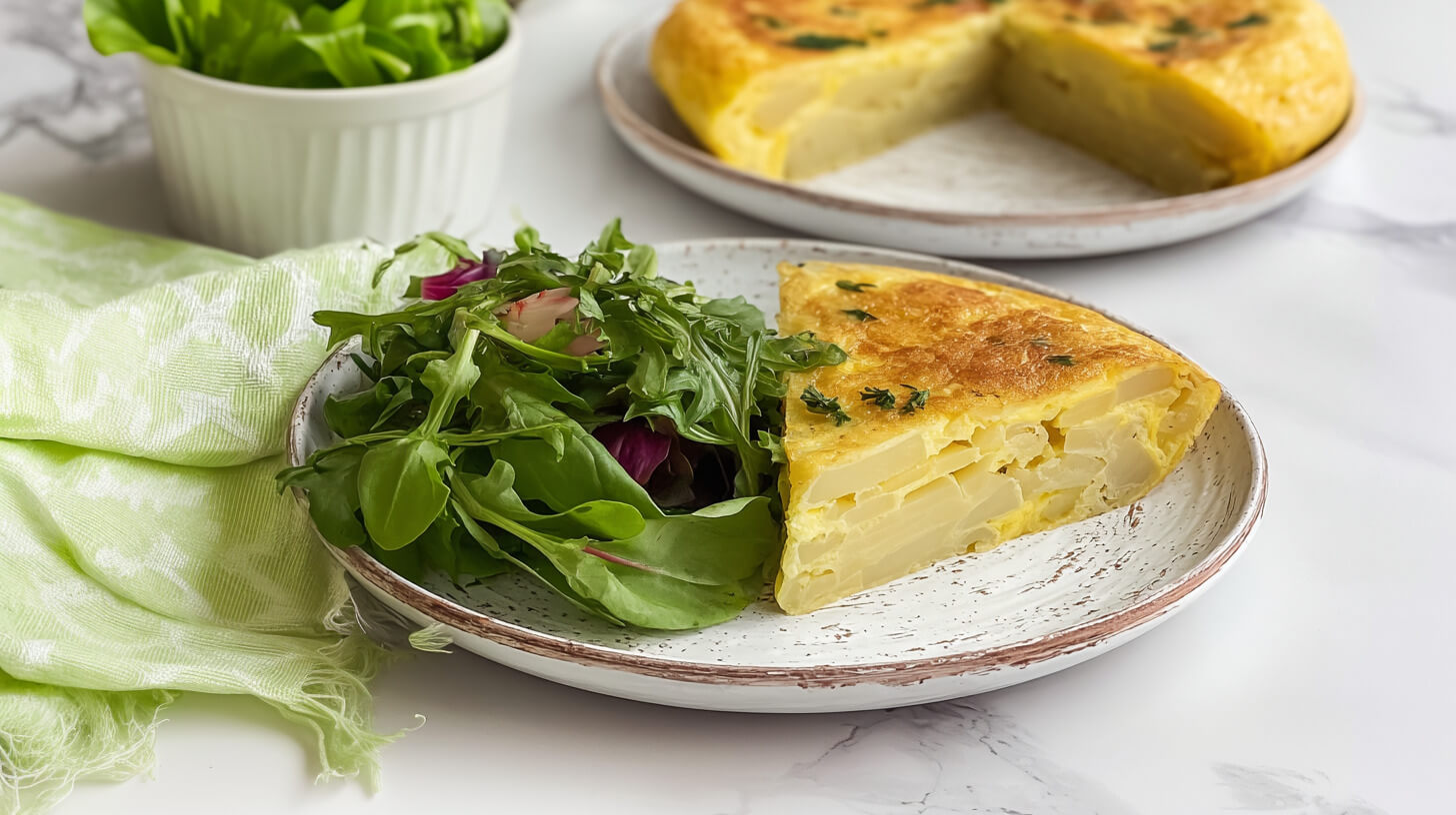 Omlet hiszpański z gotowanymi ziemniakami i sałatką