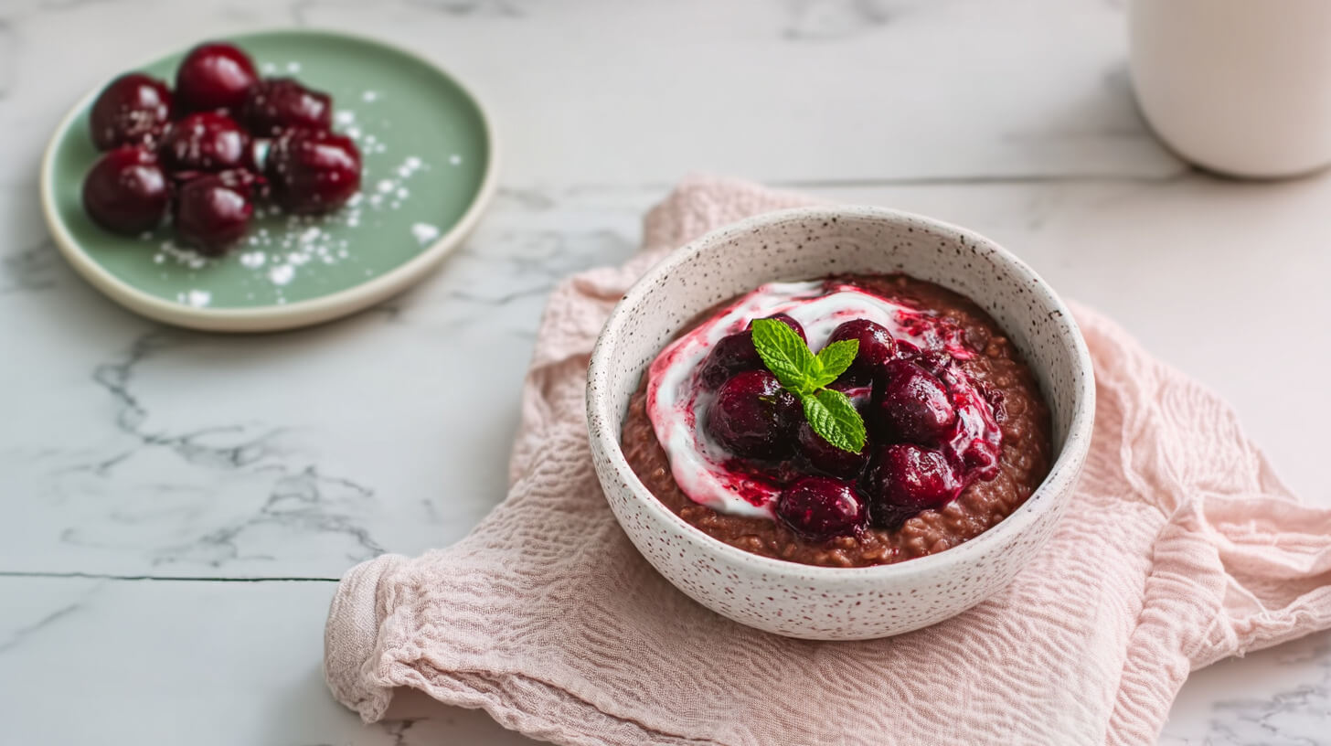 Owsianka czekoladowo-wiśniowa z wiśniami w żelu