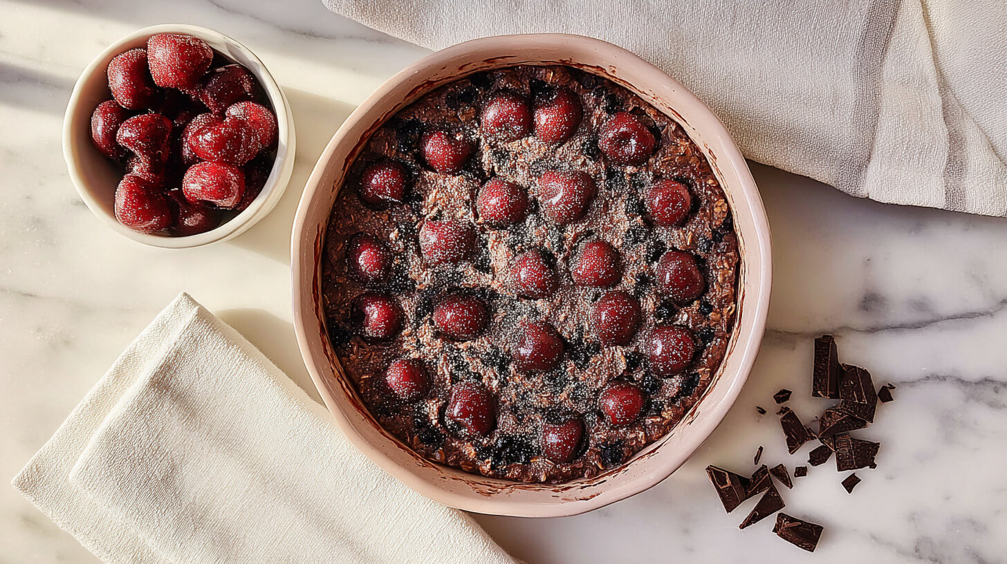 Wstawiamy do rozgrzanego piekarnika i pieczemy przez około 25–30 minut, aż owsianka się zetnie i lekko zarumieni na brzegach.