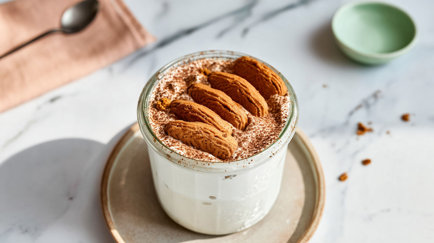 Miseczkę przykrywamy (np. talerzykiem lub folią spożywczą) i wstawiamy do lodówki na minimum 2–3 godziny, najlepiej na całą noc. W tym czasie ciasteczka zmiękną, nasiąkną skyrem i uzyskają konsystencję przypominającą spód i wnętrze sernika.