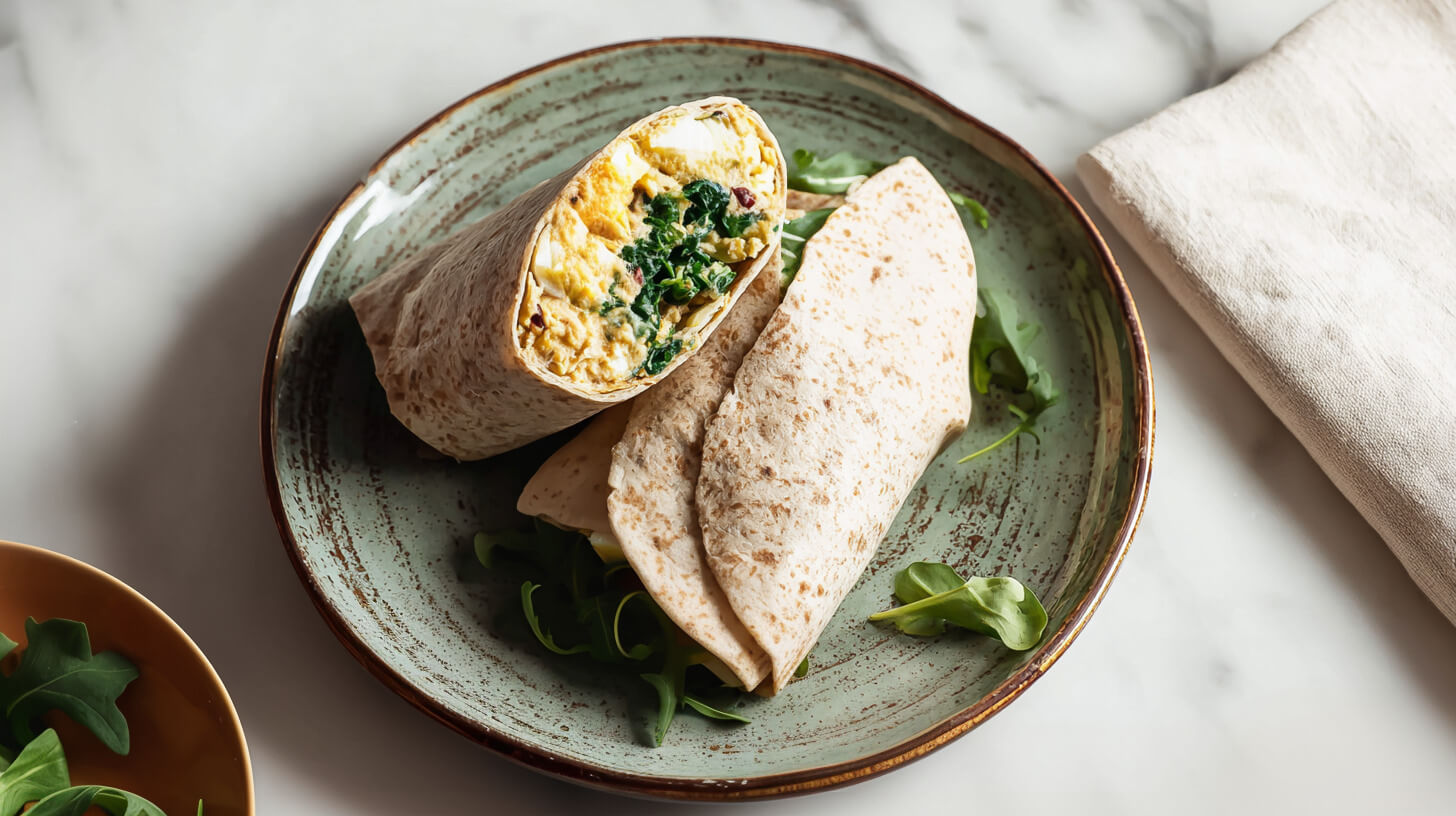 Tortilla z hummusem, jajkiem i rukolą