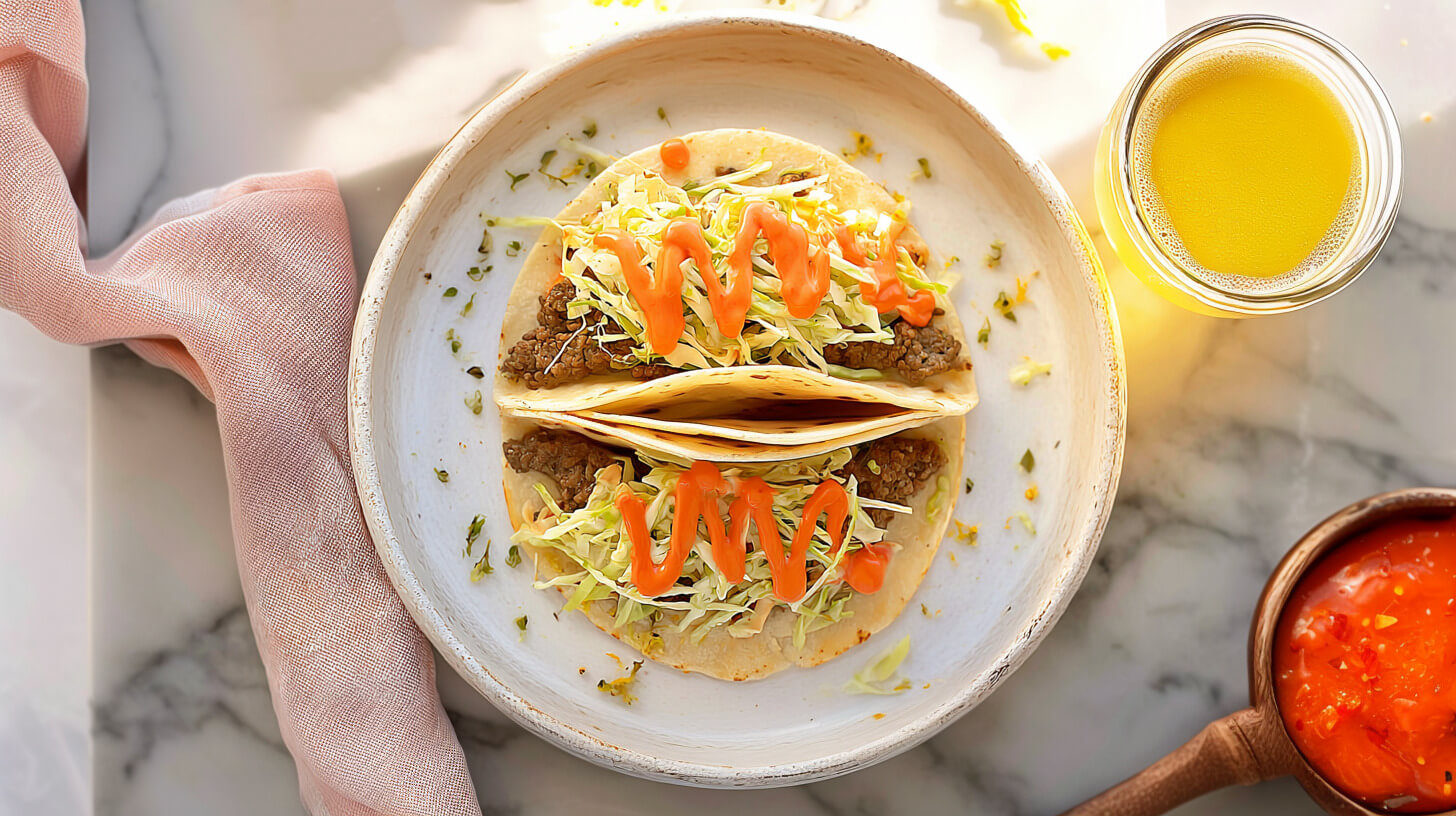 Na patelnię kładziemy uformowany burger z mięsa o grubości 0,5-1 cm, kładziemy tortillę i mocno dociskamy dłonią, smażymy go bez przykrycia przez około 3-4 minuty, do momentu, aż spód wyraźnie się zrumieni i zetnie.